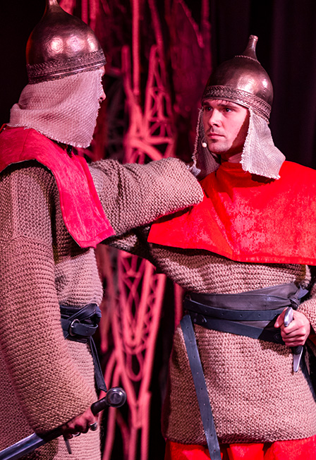 Основная идея «Слова о полку Игореве» – стремление к единству Русской земли, к собиранию народной силы в противовес ослаблению и раздроблению государства, благодаря усобицам князей-феодалов. Безусловно, главная и непростая задача – превратить прозаический или поэтический текст «Слова» в сценическое действо, героический эпос в захватывающее зрелище, удивительные метафоры автора «Слова» в яркие сценические образы. И здесь на помощь режиссеру и художнику должна прийти лексика «Слова», которая необыкновенно богата и разнообразна, в ней есть, например, обозначения голосов птиц – «говор» галок, «текот» дятлов, «крик» лебедей, «щекот» соловьев. Это, своего рода подсказки в поиске звукового и музыкального ряда будущего спектакля, который должен сочетать в себе многообразие природного и духовного, фольклорного и поэтического, эпически-трубного и церковно-хорового, основанного на древних знаменных распевах, раннем русском многоголосии и оригинальном современном