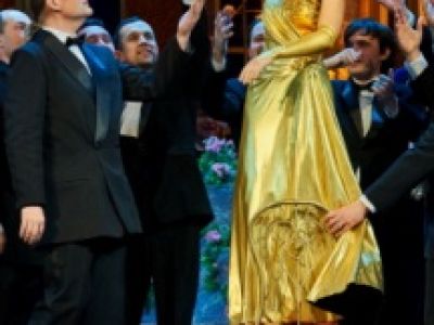 Дюма-сына "Дама с камелиями" Постановка 2007 годаМузыкальный руководитель и дирижер - МАРКО БОЭМИ (Италия)Режиссер-постановщик - ЖАННЕТ АСТЕР (Франция)Художник-постановщик - ИГОРЬ ГРИНЕВИЧ (Новосибирск)Художник по костюмам - ОЛЬГА РЕЗНИЧЕНКО (Москва)Хормейстер - ЛЮБОВЬ ДРАЗНИНАХудожник по свету - ВАСИЛИЙ СТЕПАНОВ (Большой театр России, Москва).