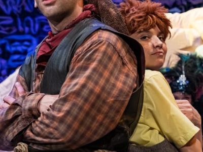 На сцене — история о двух незадачливых авантюристах, которые похитили мальчишку, чтобы получить у его богатого папаши выкуп.