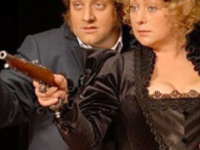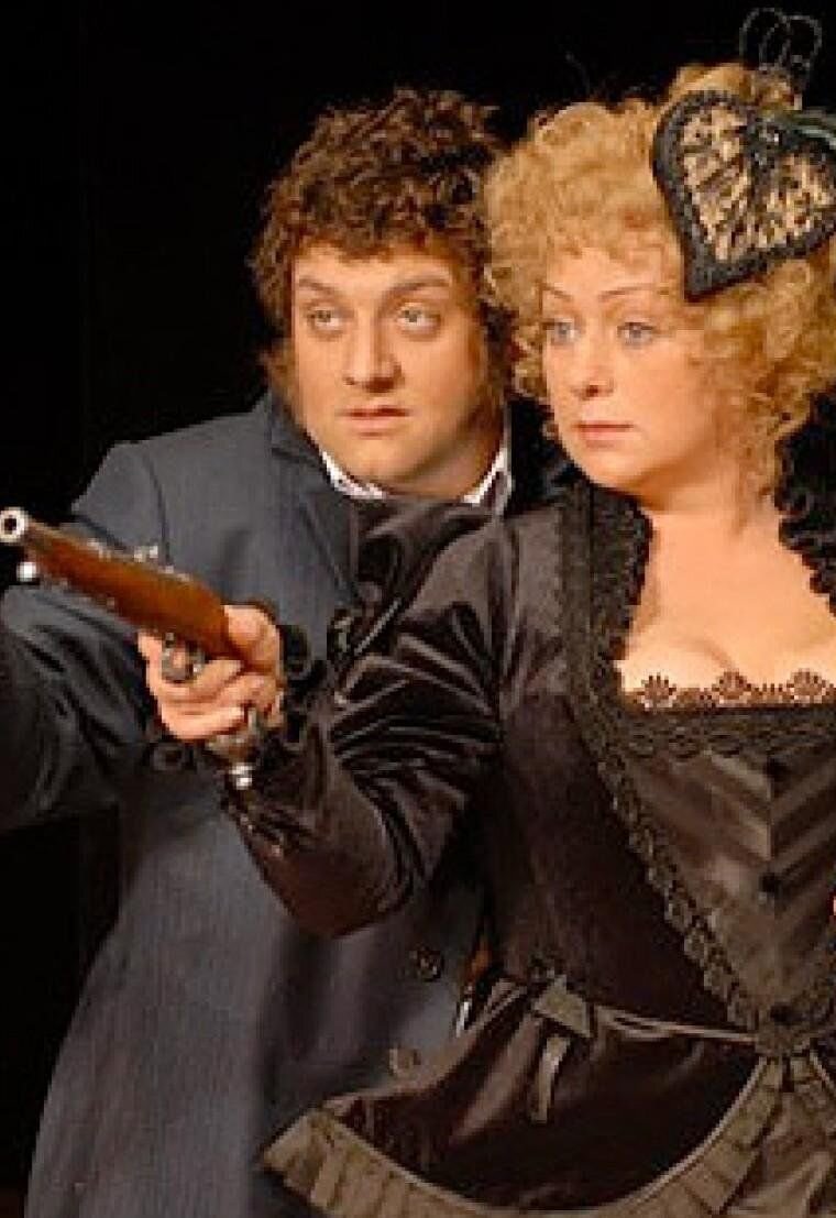 Но является грубиян, женоненавистник, собиратель денежных долгов, дуэлянт, готовый стреляться с героиней!