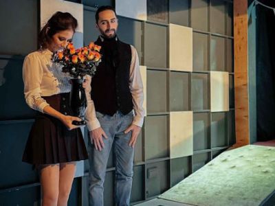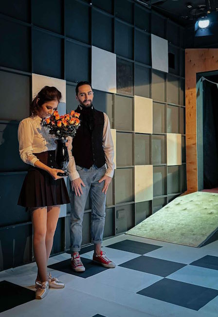 Сцена Театра «Человек» превращается в шахматную доску, на которой персонажи-интриганы меняют «маски» и костюмы, затягивая Пурсоньяка в водоворот игры.
