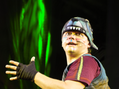 Яркое красочное оформление спектакля погружает зрителя в настоящие джунгли.