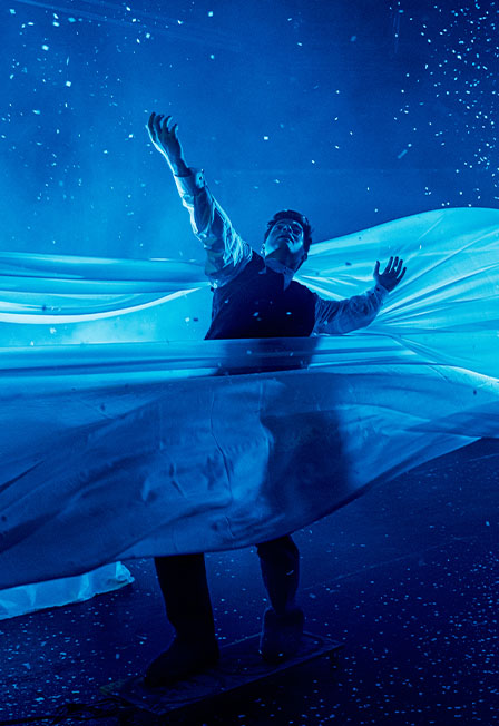 В спектакле будничная жизнь главного героя переплетается с его грезами, в которых оживают причудливые картины воспаленного воображения.