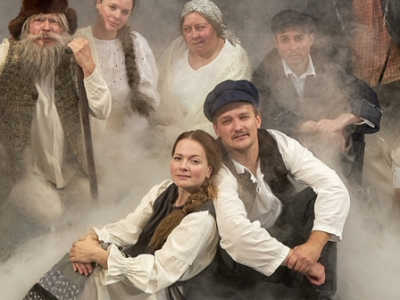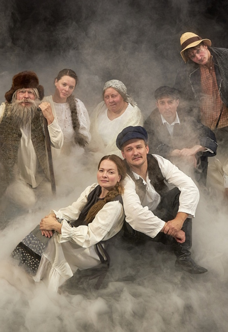 В камерном игровом пространстве Малой сцены на Поварской режиссер пробует воссоздать особый образный строй повести, в котором соединены реальность жизни и фантазия, где действуют и корова, и колодец с журавлем, и огородное пугало, наряду с главными персонажами – жителями «счастливой деревни» Полиной и Михеевым.