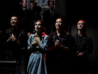 Дождливым вечеромБаллада о войне и любвиСпектакль Российского государственного института сценических искусств Мастерская заслуженного артиста РФ И. И. БлагодёраДню Победы посвящаетсяСпектакль-баллада о войне и любви, в которой стали песни военного времени, а также стихи и песни о войне XX века. Зрители наблюдают в зале кинотеатра, на экране которого демонстрируются кадры из фильмов и хроник военного времени. На этих ярких декорациях молодые артисты изображают историю, в которой трепет и боль вместе, надежда и любовь каждого человека подсвечены одним фоном — войной. Пронзительный объединяющий лейтмотив спектакля — ожидание любимых и надежда на скорую встречу друг с другом. Пространство спектакля пронизано памятью о том времени и звучит как бы реквием по всему, что было разрушено — по судьбам людей, по первой любви, по возможностям счастливой жизни. Премьера спектакля состоялась 27 января 2024 года на сцене Учебного театра на Моховой и была приурочена к 80-летию полного снятия блокады Ленинграда. Спектакль стал дебютом на большой сцене для студентов второго курса магистра заслуженной артистки РФ Ивана Благодёра . Несмотря на юный возраст, вокальные способности этого курса уже получили высшую оценку жюри на нескольких межвузовских фестивалях, а также от таких мастеров, как Алексей Гориболь и Юрий Александров. Художественный руководитель – Иван БлагодёрРежиссёр – Алексей ЕдошинПродолжительность: 1 час 10 минут. Без