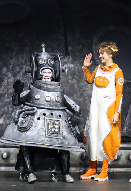 Над спектаклем работали:Режиссер-постановщик Михаил Смирнов Заслуженный артист РФРежиссер Ангелина ДобровольскаяХудожник-постановщик Яна ШтокбантХудожник по свету Ксения НужинаМузыкальный руководитель Александр ЛихачёвБалетмейстер Виктория КонноваКомпозитор Сергей ПлешакПоэт Николай Денисов Заслуженный артист РФАссистент режиссера Екатерина ЛуценкоАссистент режиссера Светлана ЗахароваРоли исполняют:Алиса Селезнева Карина Калугина/Маргарита ТаничеваПрофессор Селезнев Сергей Магиленич Заслуженный артист РФ/Михаил БондарукМеханик Зеленый Евгений Берёзкин/Николай СкоромниковГромозека Илья Кузнецов/Георгий ПинаевскийПтица Говорун Андрей Подберезский/Арсений ПолиевецДоктор Верховцев Сергей Коннов/Андрей ЛёвинВесельчак У Александр КожевниковКапитан Ким Вячеслав СемёновОфициант / Пират Крыс Игорь Коржов/Любомир РистичАлиса из будущего / Кустик 1 Светлана Вильгельм/Юлия ОвсяниковаКустик 2 Алёна Леонтьева/Марина ТитоваКустик 3 Екатерина ПортнягинаПродавщица Шаровика Татьяна Егорова/Марина ТитоваУшанка 1 Екатерина Груца/Анастасия МорозУшанка 2 / Репортер Евгения Кузьмина/Анна ЛищенкоУшан-продавец невидимых рыб Дмитрий Жигунов/Вячеслав ЛебедевУшан-продавец Говоруна Никита КрахмалёвРобот с планеты Шелезяка Руслан Каехтин/Сергей КротовЗеленый человечек с планеты Шишинеру Кирилл ШимолинПереводчик Георгий Хромов-БорисовМузыкальная инопланетная группа Александр Кожевников, Никита Крахмалёв, Георгий Хромов-Борисов, Кирилл