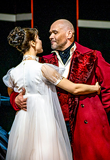 Грандиозный бал-спектакль с огромными масками, роскошными костюмами и масштабными декорациями переводит фокус внимания зрителя со слов на эмоции и поведение героев.