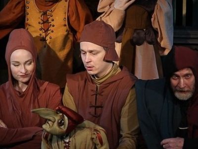 ГауфаАвтор пьесы – заслуженный деятель искусств России Николай Боровков по сказке Вильгельма ГауфаРежиссёр – заслуженный деятель искусств России Николай БоровковХудожник – заслуженный деятель искусств России Нелли ПоляковаКомпозитор – заслуженный работник культуры России Михаил БебришАртисты: заслуженная артистка России Эмилия Куликова, Владлен Котов, Сергей Горячёв,Екатерина Стукалова, Ольга Зорина, Пётр Игнатьев, Софья Благова, Ольга Маноцкова, Елена ШеметЗанавес открывается, и мы попадаем на рыночную площадь средневекового города.