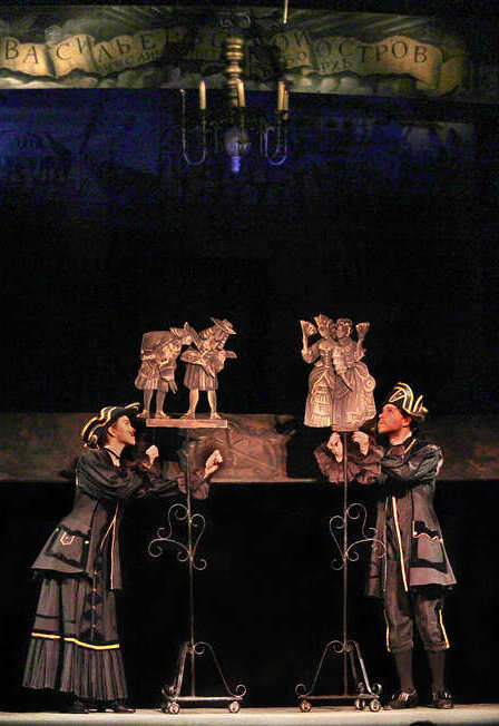 Изысканное художественное оформление спектакля (декорации, костюмы актеров, куклы) выполнено в фантастично-элегантном, истинно петербургском стиле.