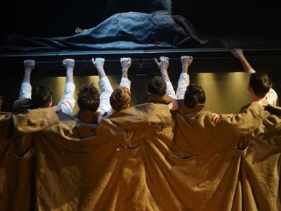 Жанр спектакля – «саундрама» - помогает найти сценический эквивалент и для знакомых нам с детства строчек Окуджавы, и для тех, что зритель услышит впервые.