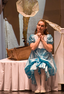 Театральная фантазия по мотивам произведений Л. КэрроллаСтрана Чудес — это просто иллюзия, существующая лишь в бесконечных фантазиях Алисы. Ей предстоит раз и навсегда решить, в каком мире остаться. Какой же выбор она сделает? Авторы: Е. Сивко, Л. ШегалРежиссер-постановщик: засл. арт РФ Евгений СивкоХудожник-постановщик: Юлия СелавриПродолжительность: 1 час 10 минутРекомендуемый возраст:
