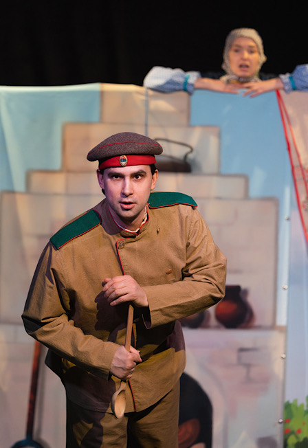 Весёлый детский спектакль создан по мотивам русских народных сказок «Вершки и корешки», «Каша из топора» и «Битый не битого везёт». В спектакле сочетается работа актёров живого плана с кукольным театром. Яркие фокусы, интерактивное взаимодействие с юными зрителями, игра на русских народных инструментах и яркое зажигательное актёрское исполнение делают спектакль настоящим праздником для самых юных зрителей. Продолжительность: 40 минут, без