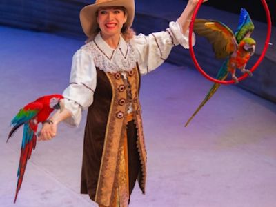 Кстати, во время Путешествия можно увидеть уникальный номер (лауреат Международного конкурса) с обезьянками-канатоходцами, где ВПЕРВЫЕ в истории дрессуры обезьян исполняется трюк «переднее сальто», которое делает наша очаровательная макака Жасмин!