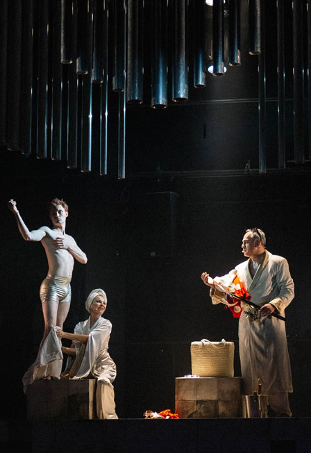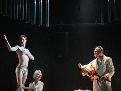 Режиссер решительно отмёл все театральные традиции «Сна» и поставил пьесу на пустой белой сцене.