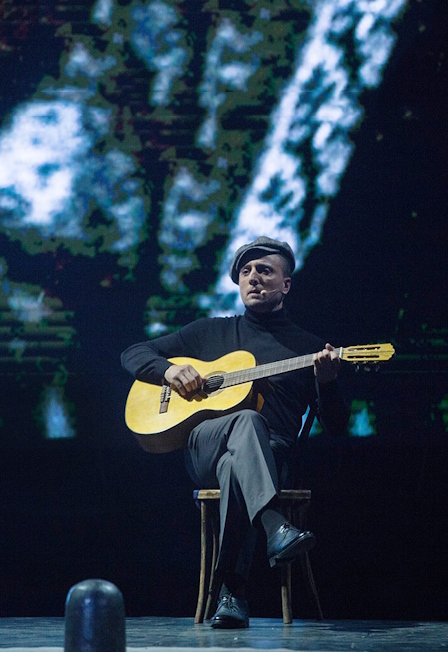 Образ Высоцкого возникает из разыгранных на сцене эпизодов его жизни, исповедальных стихов и песен.