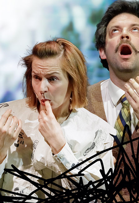 Режиссёр создает удивительные сценические миры, переплетая кино, драму, мультипликацию и русский психологический театр.