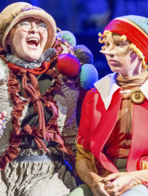 Герои сказки – Буратино, Мальвина, Пьеро, Карабас Барабас с пиявочником Дуремаром и Черепаха Тортилла – оказываются среди масок комедии дель арте, диктующей свои законы существования в сценическом пространстве.
