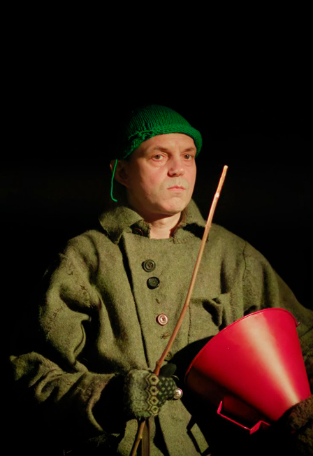 Спектакль решен средствами объектного театра, где актер, кукла, предмет, свет, звук находятся в непрерывном и равноправном взаимодействии.