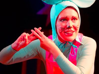 ТеремокАнастасия БеспаловаМюзикл в одном действииСказку про Теремок знают все дети, а с музыкальным «Теремком» они смогут познакомиться в театре «Зазеркалье». Спектакль для детей от трёх лет — большая редкость для афиши Санкт-Петербурга. Анастасия Беспалова, автор музыки, адресовала своё сочинение именно малышам. Обитатели этого необычного «Теремка» – не просто сказочные герои, но и циркачи. Именно цирк мечтает построить Мышка. Ведь цирк — это и парад талантов, и игра, радость, волшебство. К воплощению своей мечты Мышка подошла со всей серьёзностью. И к ней потянулись цирковые артисты: Заяц-жонглёр, Волк-эквилибрист, Медведь-силач. . . Анастасия Беспалова, екатеринбургский композитор, в Петербурге известна своими сочинениями давно. Ее талант уже был высоко оценён в Мариинском театре, где Беспалова в 2009 году стала лауреатом конкурса на создание оперы по произведениям Н. В. Гоголя. А в театре «Зазеркалье» идут любимые зрителями мюзиклы Беспаловой «Забытый день рождения», «Крошечка-Хаврошечка», «Белый клык» и «Теремок». Либретто А. Беспаловой и С. КопровойРежиссер-постановщик — Ирина ЧеркасоваМузыкальный руководитель — Пётр МаксимовХудожник-постановщик — заслуженный художник России Наталия КлёминаБалетмейстер-постановщик — Ирина НовикБалетмейстер-репетитор— Екатерина БоброваАктёрский состав:Мышь - Марина ТехтелёваЛягушка - Полина УльяноваЗаяц - Дмитрий ФёдоровВолк - Евгений КузнецовЛиса - Елена ПонятовскаяМедведь - Кирилл КорсаковПтичка, Гусь - Елизавета МайдановаПтичка, Гусь - Анна ЩербаковаПродолжительность — 1