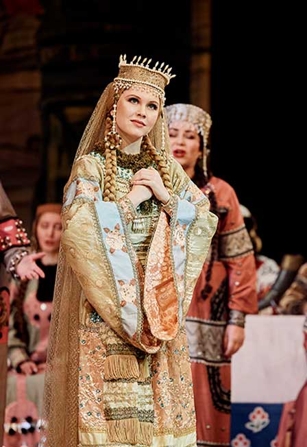 С нежными словами обращается она к своему избраннику, шутливо утешает неудачливых женихов Фарлафа и Ратмира.