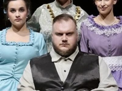 Спектакль «Женитьба Бальзаминова»Женитьба Бальзаминова – спектакль театра «Кириллица» по мотивам трилогии А. Н. Островского «Праздничный сон — до обеда», «Свои собаки грызутся, чужая не приставай! », «Женитьба Бальзаминова». Он переносит зрителей в Москву XIX века. Молодой чиновник Мишенька Бальзаминов мечтает устроить личную судьбу и выгодно жениться. Накануне основных событий ему снится сон, который, как ему кажется, сулит богатую невесту. Только вот никто из выбранных барышень не спешит расстаться с приданным ради Мишеньки и его ушлой матушки. Как видно, самому Бальзаминову не справиться. В дело вступает профессиональная сваха. Яркие многоуровневые декорации отсылают к картинам Кустодиева «Троицын день», «Купчиха за чаем», «Масленица», «Купчихи в Кинешме» и создают атмосферу Москвы позапрошлого столетия. В спектакле звучат народные инструменты, а свадьба главных героев — Бальзаминова и Белотеловой — исполнена в традициях народных гуляний с песнями, частушками, игрой на балалайках, танцами и даже цирковыми