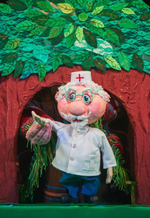 В этом спектакле задействованы разные системы театральных кукол: планшетные тростевые, теневые.
