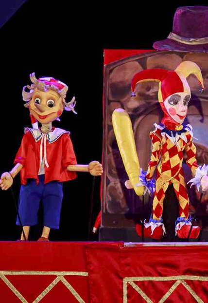 Действующие лица и исполнители:Буратино - Ирина Овсянникова, Ирина КолесниковаПапа Карло, Дуремар, Пьеро, Полицейский - Иван Твердов, Александр ШадринМальвина, Тортила, Арлекин, Касса - Екатерина Бодрова, Юлия Серова, Александра КапустинаКарабас, Базилио, Артемон - Евгений Ильин, Иван ФедосеевЛиса Алиса, Коломбина - Марина Мухаева, Юлия Серова, Екатерина НахабцеваПродолжительность: 1 час 20 минут, с антрактомУ каждого зрителя, и большого, и маленького, независимо от возраста, должен быть билет.
