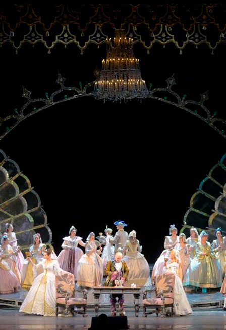 Единственная оперная работа режиссера Владислава Пази и художницы Аллы Коженковой представляет их узнаваемый стиль: пышная карнавальность, избыточная декоративность, которые так подходят яркой, жизнерадостной музыке Прокофьева.
