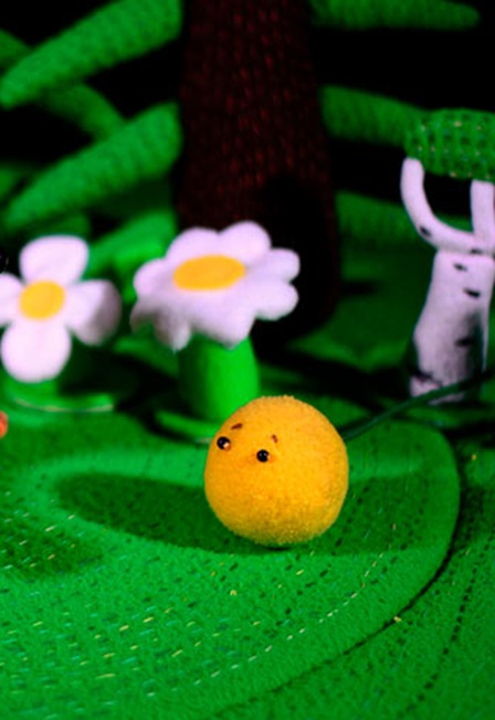 «Колобок» – камерный (всего на 2 актёра и 40 зрителей – 20 малышей с родителями), игровой спектакль, в котором максимально стирается граница между зрителем и актёром.