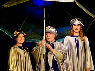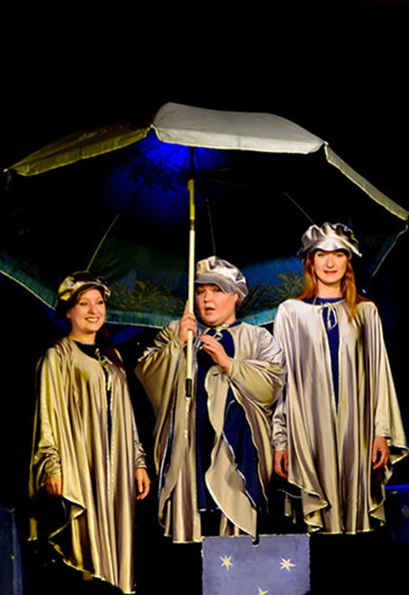 Раскрытый зонтик превращается в лунную поверхность – игровой планшет для кукольного спектакля.