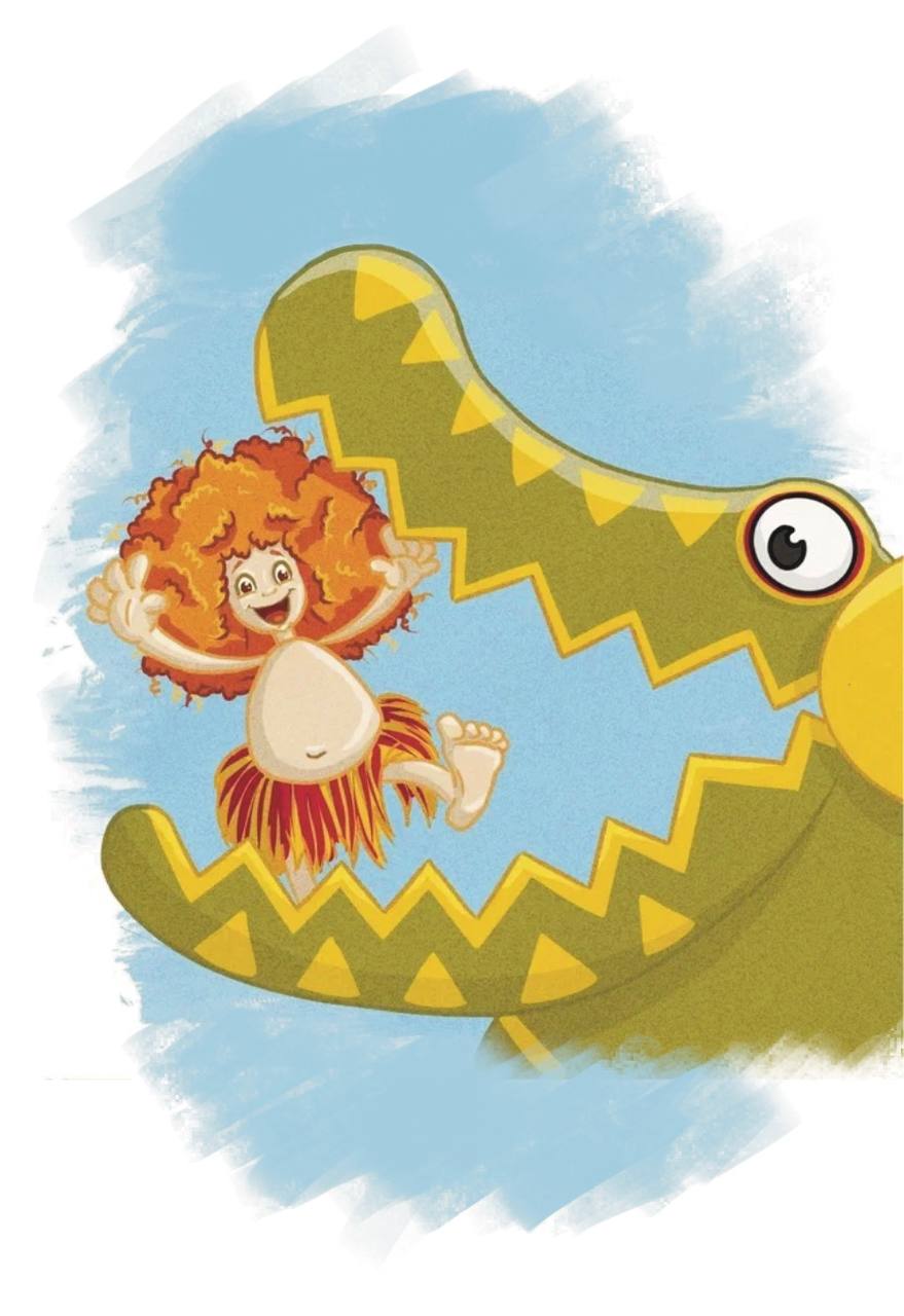 Раскинулись широкими листьями сочные зеленые пальмы, на них удобно расположились диковинные птицы, за деревьями прячутся смешные папуасы и огромный розовый бегемот, из моря то и дело выглядывают и подмигивают акулы.