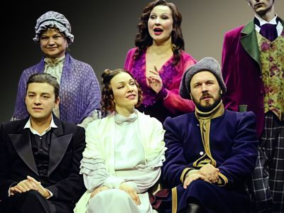 В спектакле соединились «волна и камень»: шуточная поэма «Граф Нулин» (в которой Александр Сергеевич пародирует шекспировскую «Лукрецию») и лирические русские романсы на стихи А.