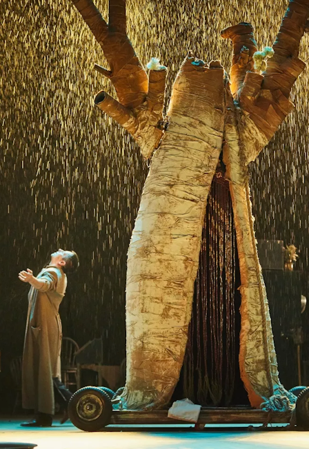 Ричард НэшРежиссёр-постановщик — Александр ЗыковХудожник-постановщик — Олег ГоловкоВ небольшом городке всё живое изнывает от невероятной засухи, а скромная девушка Лиззи — еще и от неутоленной жажды любви к местному убежденному холостяку. Стоит ли говорить, что появление загадочного продавца дождя изменит ее жизнь. Всего за сутки (и сорок шесть долларов) он обещает семье Лиззи вызвать долгожданные осадки. Волшебник? Мошенник? Сумасшедший? Кем бы ни оказался Билл Старбак, он, прежде всего, мужчина. И он заставит Лиззи поверить, что она прекрасна и желанна. Главный герой спектакля — авантюрист. Обаятельный, остроумный, решительный и отчаянно уверенный в своей удаче. По мнению режиссера спектакля Александра Зыкова, эта роль просто написана для такого артиста, как Павел Поляков:— Он обладает мужественностью и в то же время чувством юмора, что принципиально важно для роли. С одной стороны, он должен убедить главную героиню в том, что она красива, а с другой, избежать при этом пафоса и ложной глубокомысленности. Старбак — это такой вариант американского Бендера. Спектакль предлагает почувствовать, что для счастья нам на самом деле нужно не так много. У автора пьесы остроумно подмечено: дайте человеку барабан и пусть он бьет в него, когда хочется — это сделает его счастливым. Для Александра Зыкова эта история интересна своей простой и в каком-то смысле даже наивной мудростью:— Мы любим казаться сложнее, умнее, чем есть. . . И зачастую даже незначительные проблемы считаем очень серьезными. Что делает Старбак? Убеждает героев в том, что их сегодняшние проблемы на самом-то деле и не проблемы вовсе. Что делать с отчаявшейся женщиной? В ней нужно просто увидеть женщину. Вот и все. Старбак — Андрей ЯковлевЛиззи — Екатерина ЖироваПродолжительность: 2 часа 25