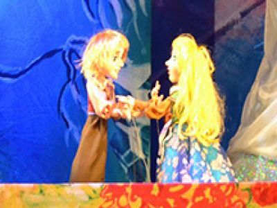 Сказка в двух действиях по мотивам произведения Г. -Х. АндерсенаРежиссеры: Андрей Крат и Елена КушнаренкоВсем малышам на ночь читает сказки любимая бабушка. И как же прекрасно, будучи ребенком верить в эту сказку, в настоящее волшебство. Вот так Кай и Герда, движимые своими детскими грезами, пережили невероятную историю, в которой добро и душевная теплота победили зло, равнодушие и холодность. Это история о необыкновенном, наполненном приключениями путешествии скромной маленькой девочки Герды, которая разыскивает своего брата Кая. Мальчика Кая похитила и унесла в свое царство могущественная и злая волшебница — Снежная королева. На пути отважной Герды было множество преград, но добрая и преданная девочка с легкостью их преодолела. Эта сказка о великой любви, о человеческой доброте, о верности своему долгу. Прекрасные тростевые куклы, волшебная музыка, спецэффекты — всё это делает постановку яркой, волшебной и незабываемой. Продолжительность: 1 час 20