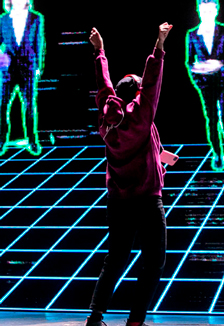 Противопоставление реального мира и мира придуманного отражено и в сценографии спектакля, которая создана с применением компьютерных технологий.