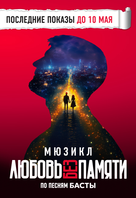 Режиссер – Алексей Франдетти«Мюзикл по песням Басты»Мюзикл «Любовь без памяти» – это спектакль о любви и вере в мечту вопреки преградам, сюжет которого отсылает к творческому пути Басты.