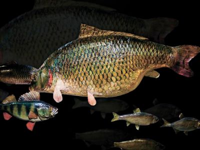 В зале располагается сухой аквариум с представителями местной ихтиофауны.
