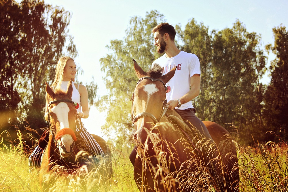 Конная прогулка - приятный и полезный подарок Прогулка на лошади - это не только приятное, но и полезное времяпрепровождение. Занятия верховой ездой благотворно влияют на физическое и эмоциональное состояние, развивают смелость, уверенность в себе, терпение и самообладание. Общение с лошадьми производит положительное впечатление на людей разных возрастов, дарит чувство умиротворения и гармонии, улучшает настроение и заряжает позитивом. Все животные, участвующие в программах, обладают спокойным характером и специально обучены общению с людьми, поэтому поездка безопасна даже для детей. Кому подарить Конная прогулка - действительно, универсальный подарок. Сертификат можно подарить и ребенку, и взрослому человеку с разным уровнем подготовки. Люди, которые впервые оказываются верхом, под присмотром инструктора без труда научатся управлять лошадью, а более опытные наездники смогут отточить свое мастерство. В любом случае прогулка по живописным местам и общение с умными и красивыми животными оставят только приятные впечатления. Активная прогулка на свежем воздухе - отличная идея для семейного отдыха, а также оригинальный подарок для влюбленных, тем более что все радостные и романтические моменты можно запечатлеть на фотографиях. Как все проходит Индивидуальные уроки верховой езды проходят в двух конных клубах в Московской области. До начала занятия на ипподроме опытный инструктор расскажет о технике безопасности, объяснит правила поведения с животными, а также будет рядом во время прогулки по парку. Чтобы кататься на лошади было максимально комфортно, стоит позаботиться о подходящей одежде и обуви. Необязательно иметь специальную экипировку - подойдет любая спортивная обувь, длинные брюки и не сковывающие движения футболки, рубашки, куртки. Что еще стоит знать, выбирая подарок Цена сертификата на конную прогулку зависит от количества участников и продолжительности самого урока, Получатель подарка сам выбирает удобные место и время, Чтобы надолго сохранить впечатления от подарка, дополнительно можно заказать профессиональную фотосъемку.