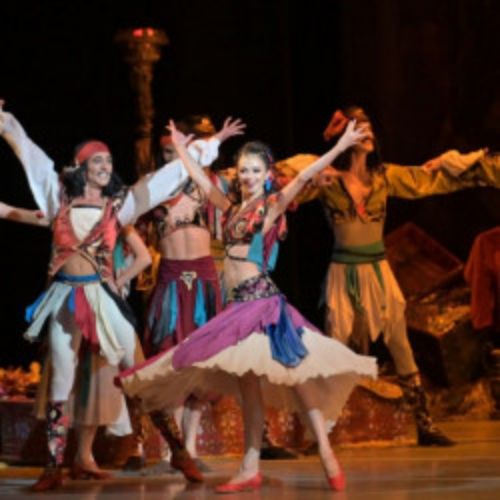 В Петербург он попал благодаря хореографу Жюлю Перро, а Мариус Петипа облагородил кричащую пестроту восточного базара рафинированно-классической картиной «Оживленный сад». И до нас «Корсар» дошел красочным марафоном разнообразных танцев, перемежающихся пантомимным выяснением отношений между персонажами. Танцев в спектакле хватает и кордебалету, и солистам. В хореографии во всей красе представлены выразительные возможности виртуозного классического танца, как женского, так и мужского: в спектакле две балеринские партии и три премьерские мужские. И редкие молодые танцовщики не мечтают блеснуть виртуозной техникой в вариациях и дуэтах этого спектакля — сорвать заслуженные аплодисменты безупречным исполнением фуэте или диагоналей поражающих воображение прыжковых трюков.