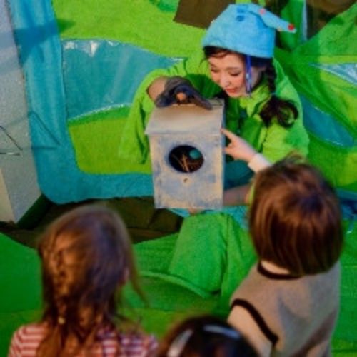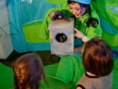 В весеннем спектакле греет солнце, тают сосульки, природа постепенно просыпается. Дети не только наблюдают, но и активно участвуют в действии вместе с актерами: пускают кораблики в ручье и кормят скворца червячками. Весной все оживает – и у нас все будет живым и настоящим: живая музыка, настоящая вода в ручье, искренний детский смех и радость от узнавания нового.