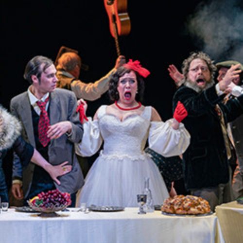 Художественный руководитель Этнотеатра Михаил Мизюков остается верным себе и особое внимание уделяет музыкальному оформлению спектакля. Здесь сочетается музыка духовых и джазовых оркестров времен НЭПа, душещипательные романсы и оригинальная современная музыка с синтетическим звучанием «будущего».