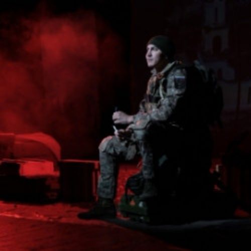 Спектакль поставлен по пьесе кузбасских авторов Виталия Дорофеева и Алексея Поселенова «Позывной «Кузбасс», или Боги переднего края».