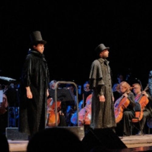 Роман с оркестром «Евгений Онегин» — литературно-музыкальный спектакль с графикой. Проект Томской филармонии для современных школьников, то есть для тех, кто читал Пушкина давно или вообще не знаком с романом.