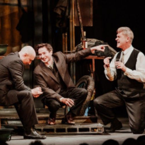 В центре постановки – мир между двумя войнами. Поколение, не успевшее залечить раны прошедшей войны и уже ощутившее приближение будущей. История любви Роберта Локампа и Патриции Хольман звучит лирическим диссонансом на фоне «хроник городской жизни», в мире, стоящем на грани очередной катастрофы. И все же спектакль «Три товарища» доказывает, что нет в жизни ничего важнее любви и нет ничего равного любви. События перестают иметь значение, нет трагического финала, нет смерти Пат, а есть четверо друзей, летящих на своём абсолютно живом и непроданном «Карле» где-то в районе Млечного пути...