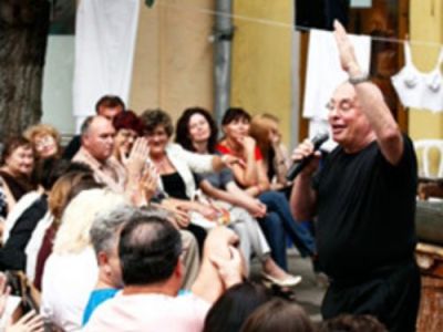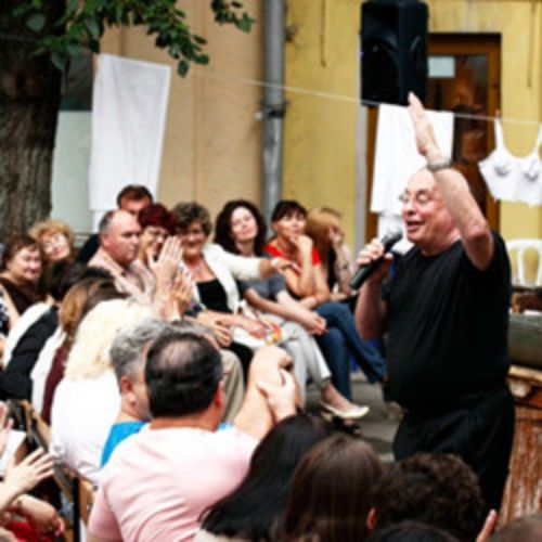 Необычное и невероятно волнующее действо разыгрывается во внутреннем дворике театра по совершенно особым законам – театра под открытым небом. Розовский придумал нечто под очень простым названием – «Песни нашего двора», и это нечто получилось на редкость заразительным.
