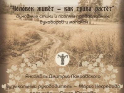 В программе: духовные песнопения православных, духоборов и молокан в исполнении Ансамбля Дмитрия Покровского.