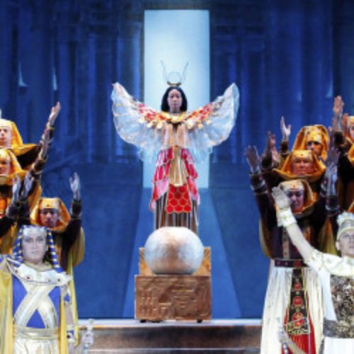 Драма любви и ревности разворачивается на фоне золота, нефритовых храмов и пирамид Египта, его триумфальных военных побед. Над монументальным оформлением сцены основательно потрудились художественно-технические цеха Бурятского театра оперы и балета.
