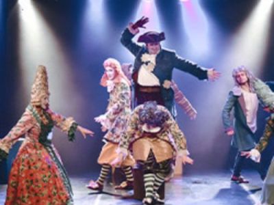 Эпоха Петра I в оригинальном визуальном решении, костюмами-трансформерами, игровыми декорациями, с клоунской подачей.