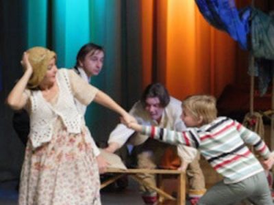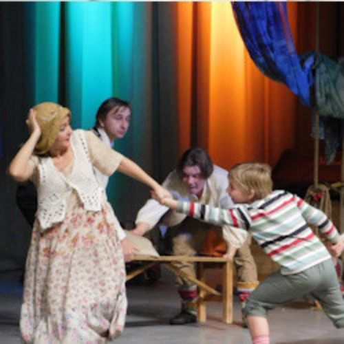 В спектакле наравне с профессиональными артистами заняты дети-ученики театральных студий города.