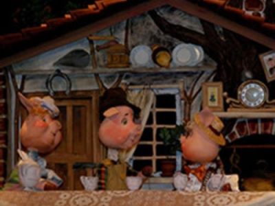 Спектакль «Три поросёнка» стилизован под старую добрую Англию, поросята, охотники, и даже волк – настоящие джентльмены, в качестве музыкального оформления использована музыка из фильма «Приключения Шерлока Холмса и доктора Ватсона».